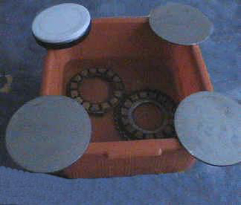 Wanneer we zover zijn dat we de koppelingsplaten uit het motorblok hebben gehaald en we 15 kurkjes van 12mm en 15 kurkjes van 13mm dik volgens model hebben gesneden uit een panne-onderzetter